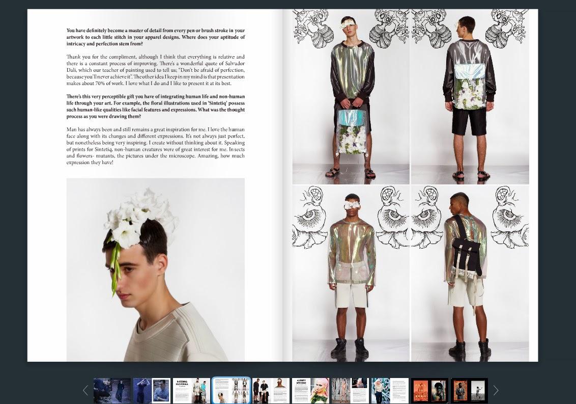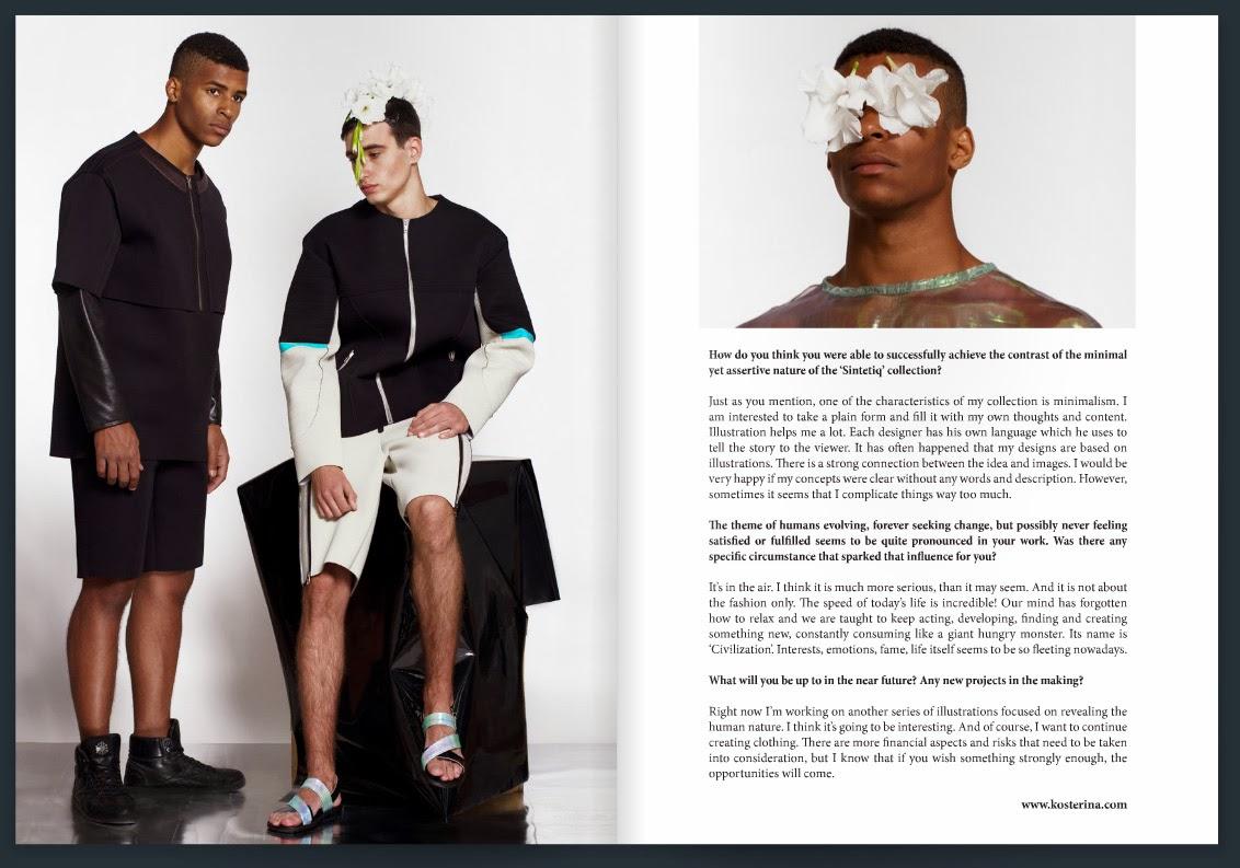 Recently I was e-mailed and asked to answer some questions about my graduation collection «SINTETIQ» and not only). That was a proposal from a very cool digital magazine «Chasseur Magazine». In the 6-th issue (Autumn’ 13) you can read my interview on page 64. And here I’ll write the interview for my russianspeaking readers. Hope you’ll find something interesting and new about me). And the issue itself in the end.