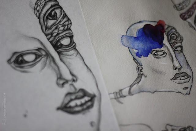 Серия «Headache» ( «Головная боль») родилась ещё в феврале. Как это часто бывает, абсолютно спонтанное нечто вылилось в целую серию работ. Вот и сейчас, игра с акварельными пятнами породила очередных «монстриков»).