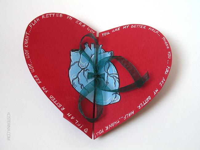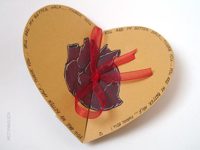 И открытка-сердце. Для двух половинок.