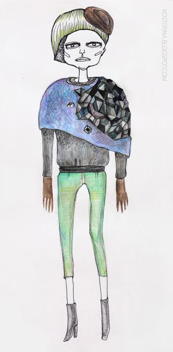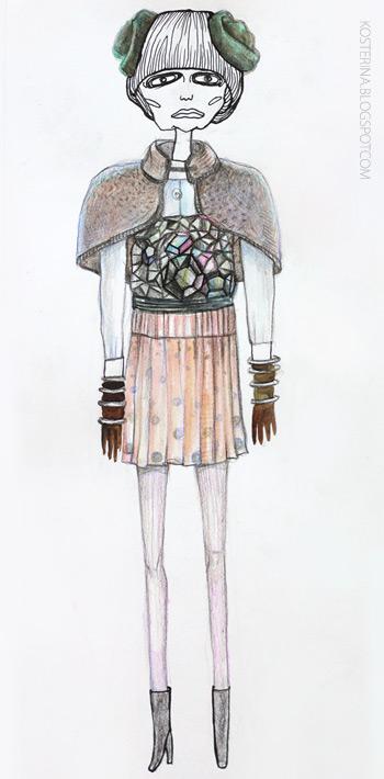 Сегодня коллекция номер один. Она у меня получилась экспериментальной, так скажем, это больше арт, чем дизайн. Назовём это классикой, вдохновлённой историческим костюмом). Пробовала разные техники, в итоге это уже трудно называть цельной коллекцией) А вам какой эскиз нравится больше всего?